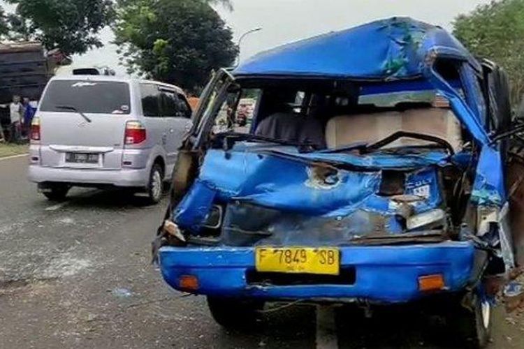 Mitsubishi L300 Wagon angkutan umum oleng lalu terbalik di jalur lingkar selatan kampung Cijambe Bobojong, Sukakarya, Warudoyong, Sukabumi