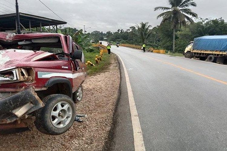 Toyota Kijang Super hancur tak keruan ditabrak truk dari arah berlawanan di Parindu, Sanggau, Kalimantan Barat