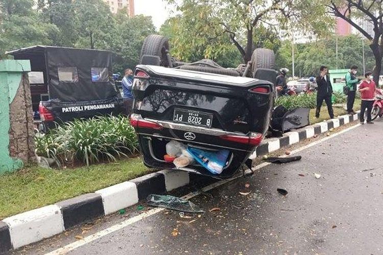 Toyota Fortuner terbalik di Jl Benyamin Sueb, Pademangan, Jakarta Utara disebut karena roda kanan depan ngerem sendiri