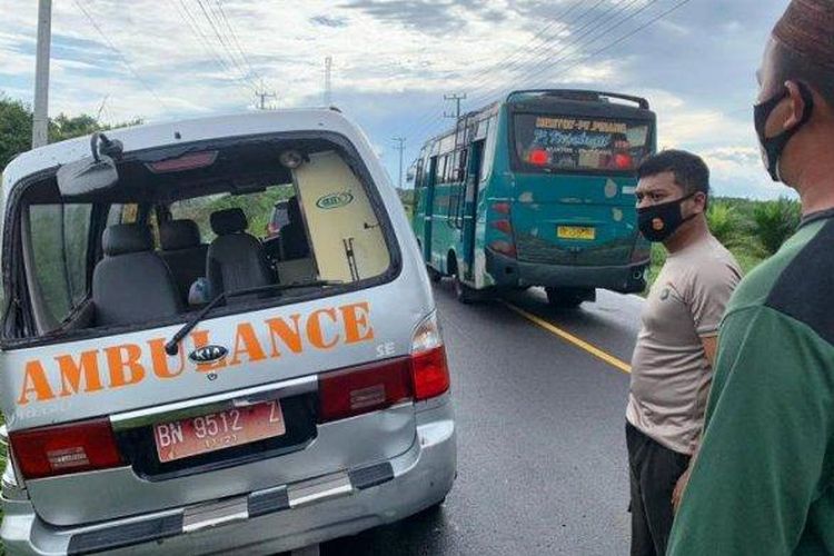 Ambulans RSUP Ir Soekarno Bangka Belitung terguling usai antar jenazah Covid-19 di Bangka Barat, dua petugas masih pakai APD