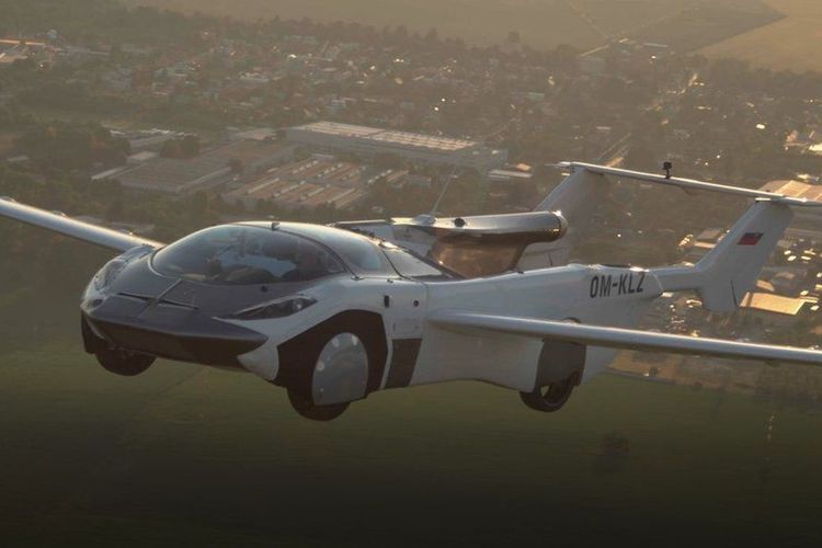 Mobil terbang AirCar bikinan perusahaan Klein Vision asal Slowakia, menggunakan mesin BMW, terbang 35 menit antar bandara