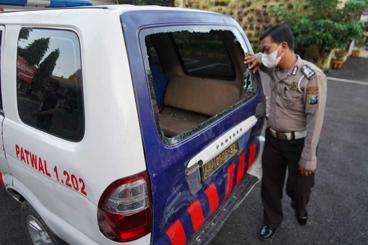 Isuzu Panther Polisi jadi sasaran amukan warga di Surabaya. Kaca dipecah saat sedang melakukan patroli PPK Darurat