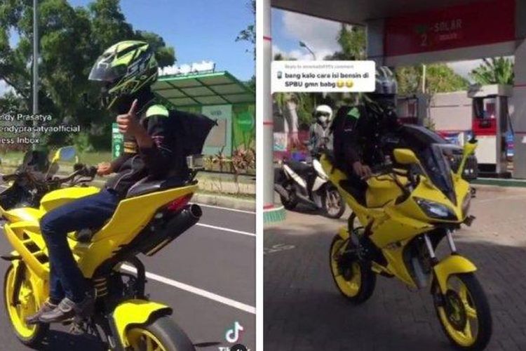 Begini modifikasi Yamaha R15 yang dibikin benar-benar tinggi. Bahkan ada cara tersendiri saat mau naik dan berhenti di lampu merah