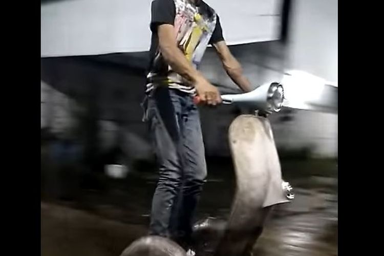 Vespa Segway Elektrik garapan asal Bandung, Jawa Barat berbasis Vespa VBB utuh yang dipotong diambil bodi depan saja