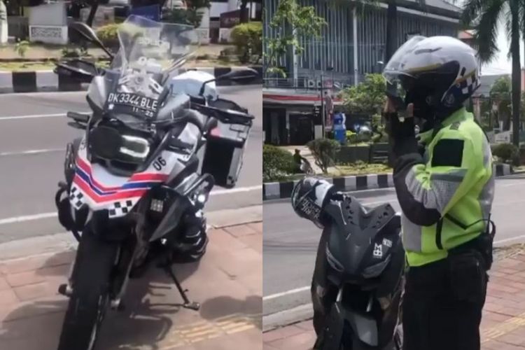 Viral WNA naik moge berbaju polisi gadungan menilang pengendara Yamaha XMAX. Pelat nomor da seragam dicurigai