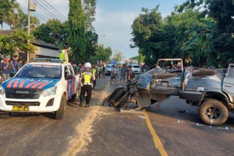Isuzu Panther Hantam Kencang Truk, Atap Terkelupas, Renggut Tiga Nyawa di Jalan Tuban-Widang