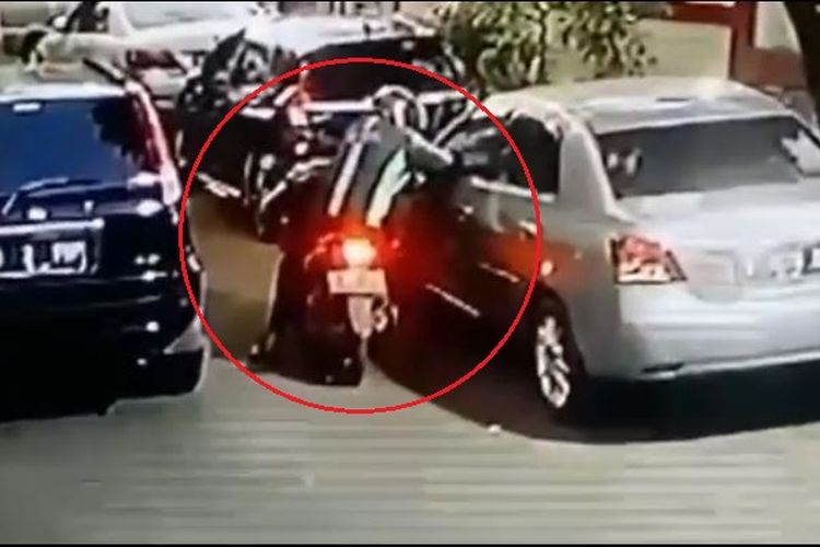 Rekaman CCTV oknum ojek online maling spion kanan kiri Toyota Vios di Tebet, Jakarta Selatan saat pagi hari