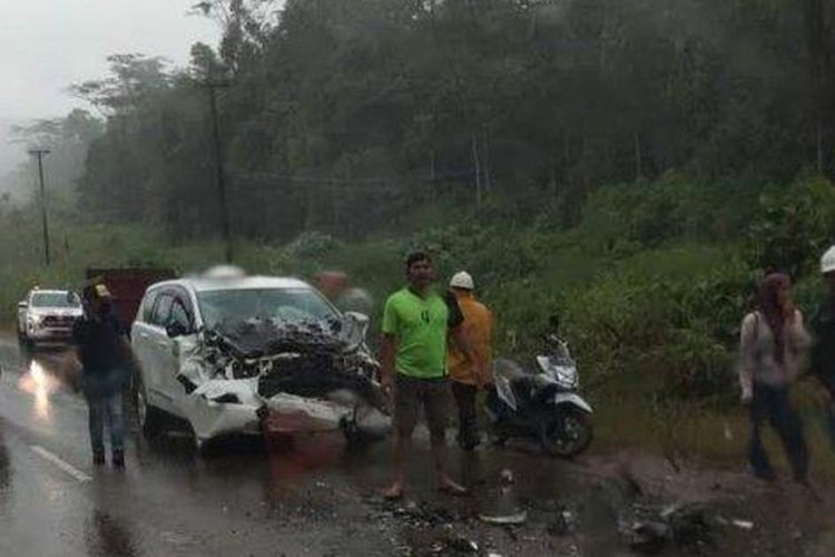 Kecelakaan taksi karyawan PT Vale, Toyota Kijang Innova hancur ditabrak Toyota Rush pecah ban di Sorowako, Nuha, Sulawesi Selatan
