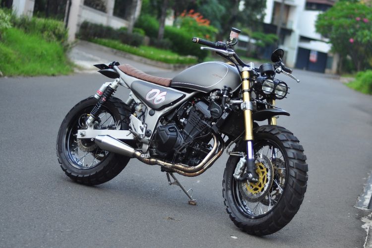 Kawasaki Ninja 250 matanya dibikin melotot dengan mengusung konsep scrambler. Kaki-kaki juga dibikin gagah