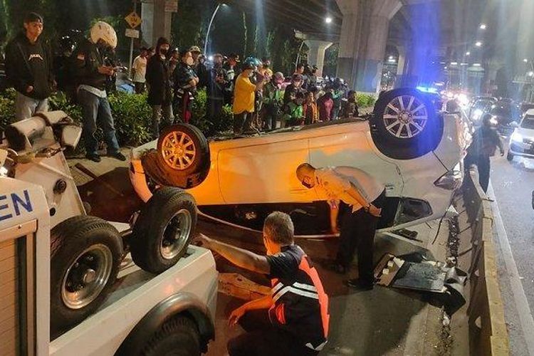 Honda Jazz jungkir balik usai tumbuk separator, Yamaha NMAX dan Gran Max gagal menghindar, ikut-ikutan nubruk