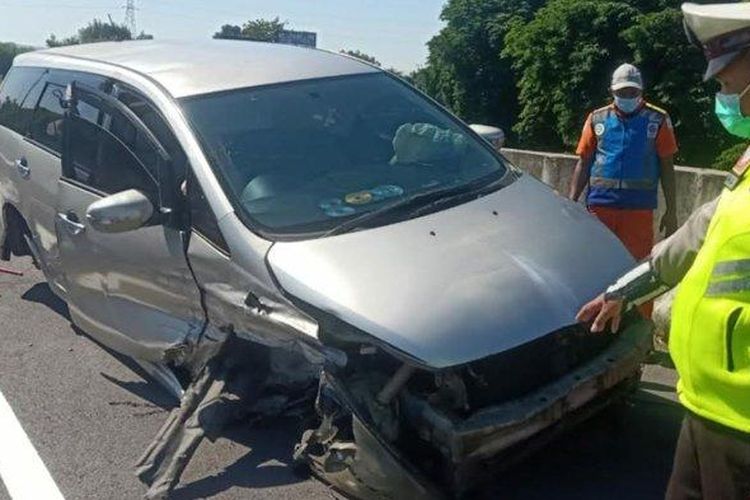Gara-gara Dering HP, Kaki-kaki Mitsubishi Grandis Ambrol di Exit Tol Mojokerto