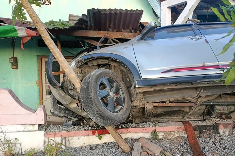 Toyota Rush masuk ke teras rumah warga usai pengemudi ngantuk hingga mobil oleh di jalanan Wonogiri, Jawa Tengah
