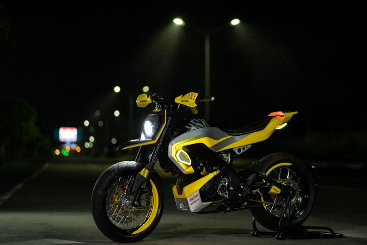 Yamaha XSR 155 dimodifikasi jadi bertemakan supermoto modern nan futuristik. Apalagi melihat desain unibody yang dianut