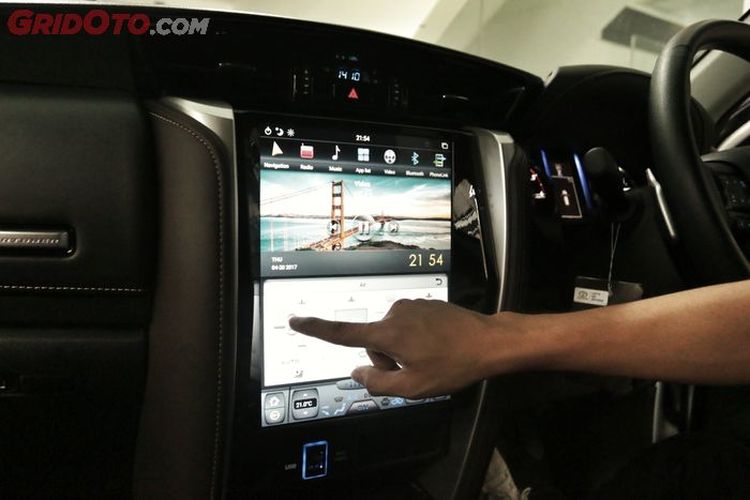 Dengan biaya Rp 9 jutaan, head unit model Tesla dari Mobiltronik terpasang rapi di Toyota Fortuner kalian