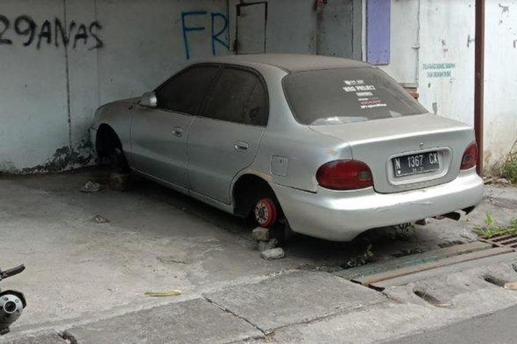 Bimantara Cakrya yang dulu dijuluki mobil nasional era Soeharto disatroni maling, empat roda lenyap diganti tumpukan batu di kota Malang