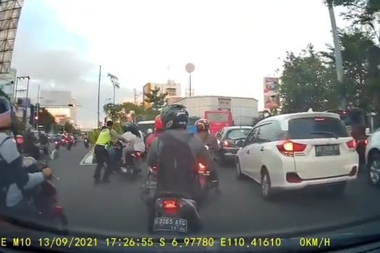 Viral video anggota polantas dorong pemotor sampai terjatuh di Semarang. Begini penjelasan Polda Jateng