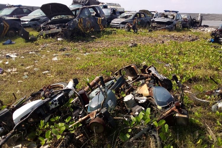 Kuburan motor dan mobil patroli Polisi di pesisir Marunda, Jakarta Utara, semua mangkrak tak terurus dan memilukan