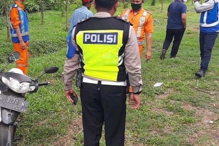 Pengendara Suzuki Shogun terobos ruas tol Sidoarjo-Porong dan berujung terperosok parit hingga luka memar, saat ditanya linglung