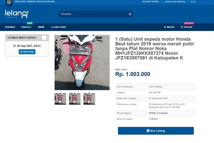 Honda BeAT Dilelang Rp 1 Jutaan, Supra Sampai Vario Rp 200-500 Ribuan
