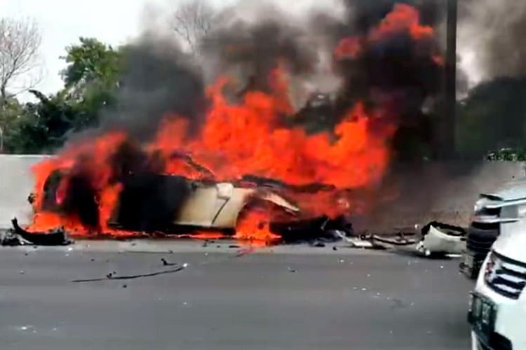 Tak Berberntuk, Begini Kondisi Nissan GT-R Milik Wakil Jaksa Agung yang Terbakar di Tol Jagorawi