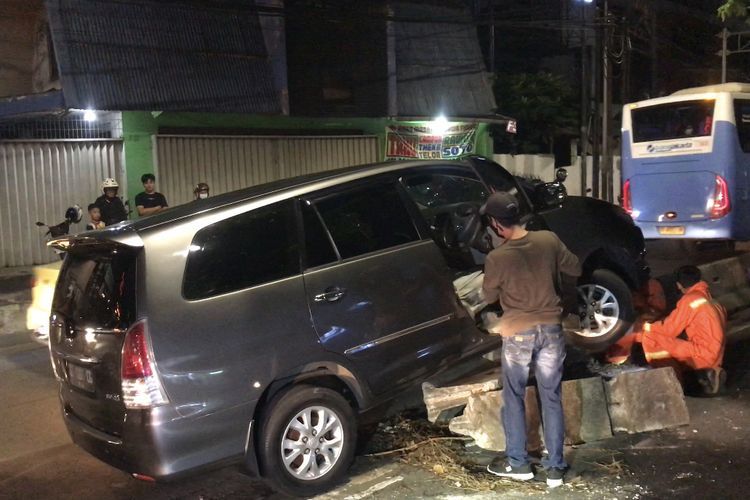 Peristiwa kesekian kali, Kijang Innova tabrak separator busway di Jl Sultan Iskandar Muda, Kebayoran Lama, Jakarta Selatan