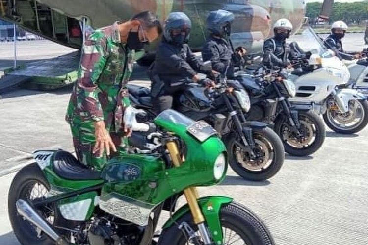 Motor custom Kawasaki W175 milik Presiden Jokowi turun dari pesawat TNI AU, berubah aliran jadi Neo Cafe Racer, jajal sirkuit Mandalika?