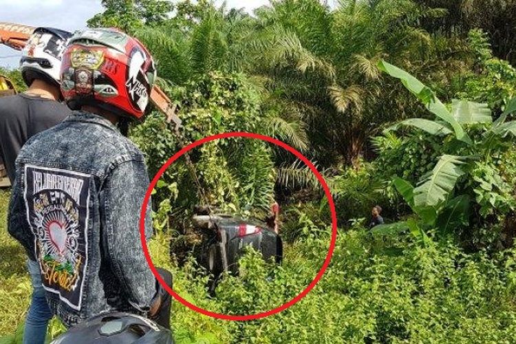 Toyota Kijang Innova tergelincir hingga putar arah lalu terjun ke semak belukar di desa Jilatan, Batuampar, Tanah Laut, Kalimantan Selatan