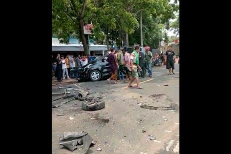 Toyota Avanza Veloz hancur hingga roda, sokbreker dan panel bodi berserakan usai bertabrakan dengan truk di kabupaten Cianjur