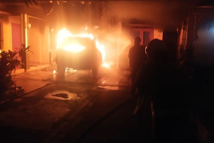 Berawal dari asap keluar di balik mesin, Nissan X-Trail hangus terbakar dan api merambat ke Mercedes-Benz
