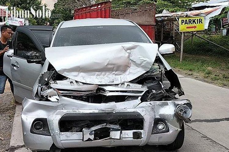 Daihatsu Xenia ringsek parah usai adu kepala dengan truk box di jalan Waduk Cengklik, Ngemplak, Boyolali, Jawa Tengah