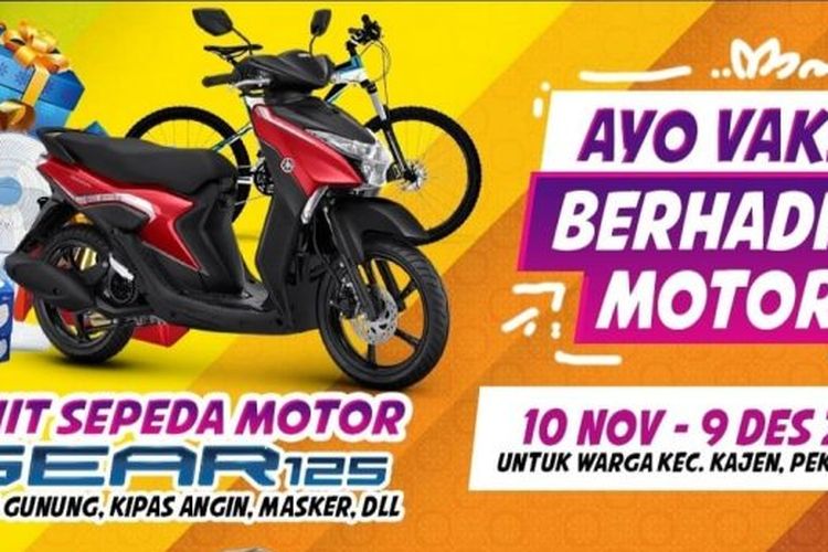 Vaksinasi massal di kecamatan Kajen, Pekalongan bikin tergoda, karena warga berkesempatan mendapat motor gratis Yamaha Gear 125