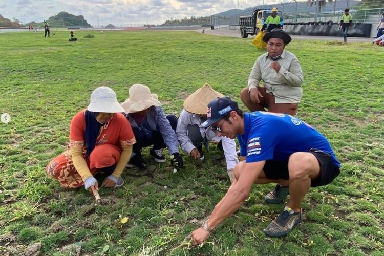 Toprak Razgatlioglu ngarit cari rumput sambil ngerumpi sama emak-emak di sirkuit Mandalika, Lombok, NTB