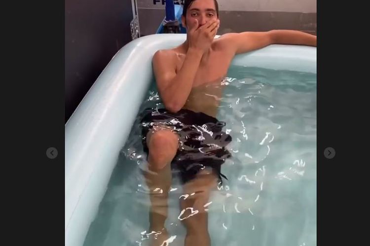 Toprak Razgatlioglu dan Andrea Locatelli berendam di kolam bocah usai FP1 WorldSBK Indonesia 2021 karena kepanasan