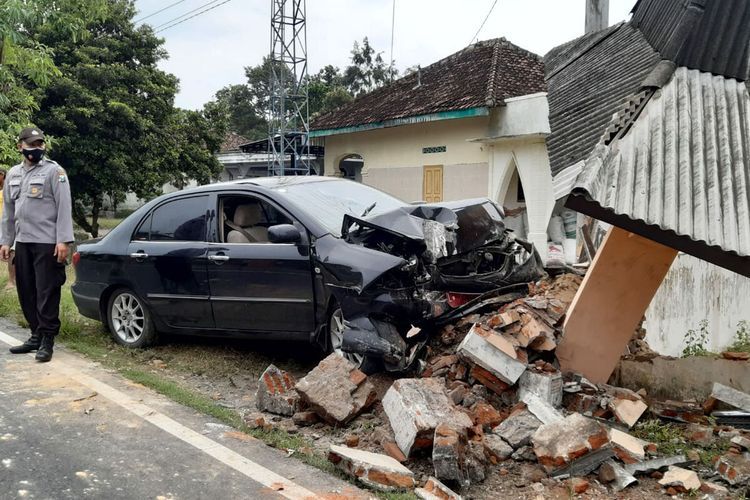 Gara-gara sopir kaget, Toyota Altis pelat merah hantam tugu pembatas desa sampai roboh. Begini kronologinya