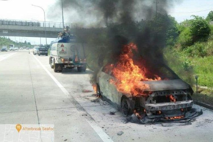 Toyota Limo terbakar habis tak bersisa di ruas tol Batang-Semarang, wilayah Kaliwungu, Kendal, empat orang selamat