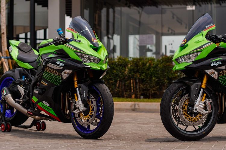 Kawasaki Ninja ZX-25R disuguhkan 2 model bottom fork. Bahan aluminium, braket kaliper radial, dan warna beragam. Ini pilihannya