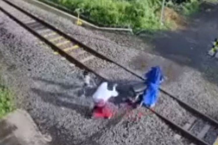 Rekaman video detik-detik ibu dan dua anak nyari tertabrak kereta api setelah Jupiter Z yang ditumpangi selip di atas rel Lumajang