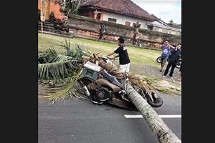 Pengendara Vespa patah kedua kaki akibat ditebas pohon kelapa setinggi 15 meter tumbang di Sukawati, Gianyar, Bali