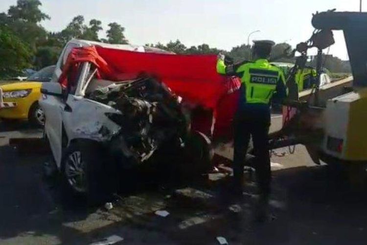 Kecelakaan di tol Jakarta-Cikampek KM 54, Nissan Serena hancur lebur tabrak bak dump truck sebabkan dua orang tewas