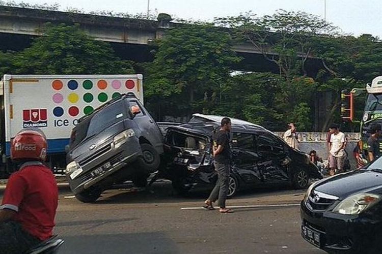 Kronologi tabrakan beruntun 7 kendaraaan di Jl RE Martadinata, Tanjung Priok, Jakarta Utara, Agya, Ayla, Sigra, Ertiga sampai Gran Max saling tindih