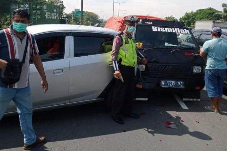 Kronologi tabrakan beruntun 7 mobil di ruas tol Waru-Perak KM 15.400/B, Jawa Timur, berawal Toyota Calya rem mendadak
