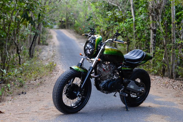 Suzuki Thunder 250 dimodifikasi bergaya scrambler, dengan banyak menggunakan part copotan moge, seperti swing arm Ducati