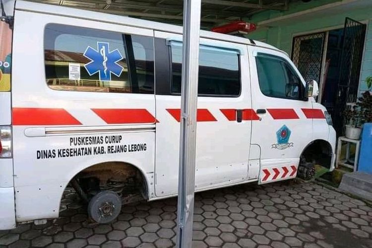 Bisa-bisanya Maling Satu Ini, Ambulans Dibikin Ngambang Usai 4 Bannya Digondol Semua