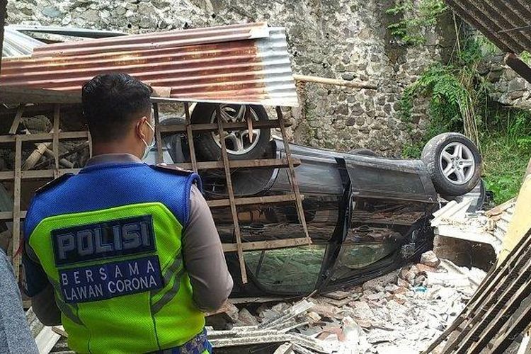 Lexus RX 350 terjun bebas timpa dapur rumah warga posisi kayang, pengemudi terjebak di kabin teriak minta tolong di Candisari, kota Semarang