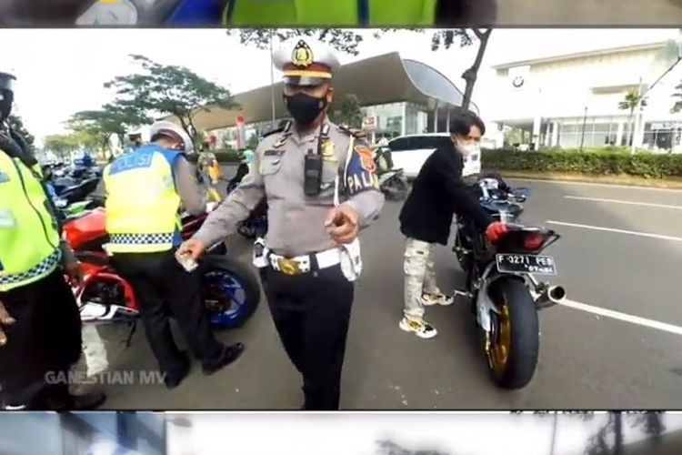 Viral video Yamaha R15 kena tilang polisi karena pakai knalpot brong. Tapi polisi juga kuras tangki bensinnya