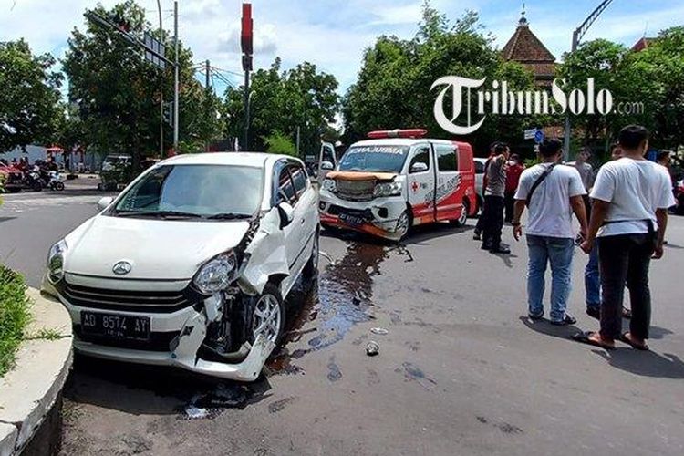 Ambulans PMI Solo bawa pasien darurat rompal di kawasan Stadion Manahan, Solo ulah pengemudi Daihatsu Ayla yang egois