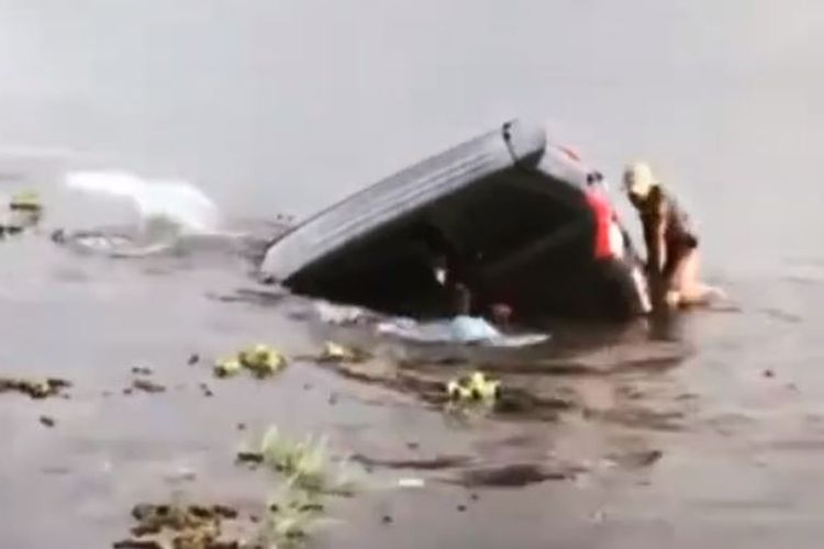 Detik-detik Toyota Avanza isi tiga orang tenggelam di rawa Tanjung Senai usai gagal masuk jalan raya