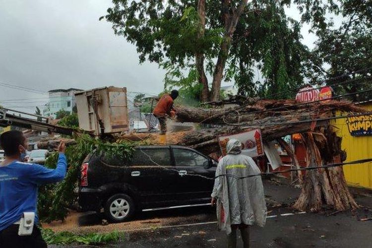 Pemilik Cuma Bisa Pasrah, Pohon Angsana Rebahan Pas di Atas Avanza, Terios Dan Jazz