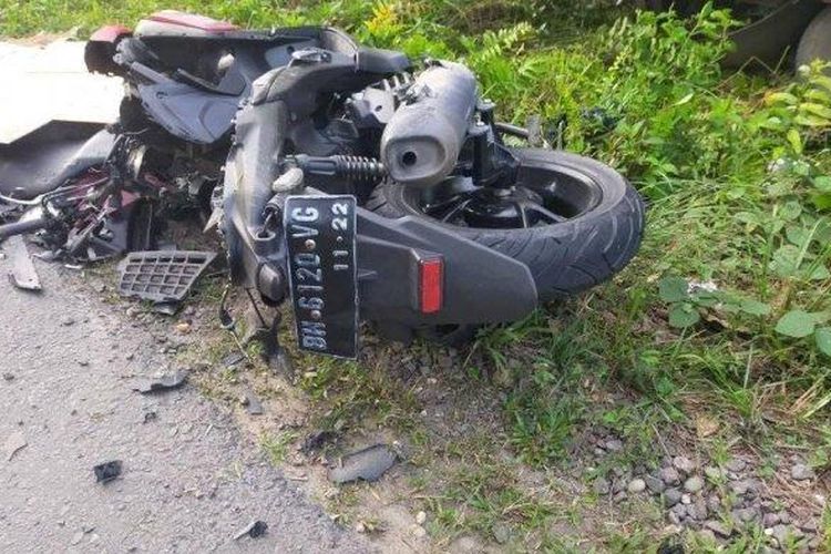 Yamaha Aerox terpenggal separuh setelah pengendara jatuh lalu tubuh disambut truk dari arah berlawanan di Bajubang, Jambi