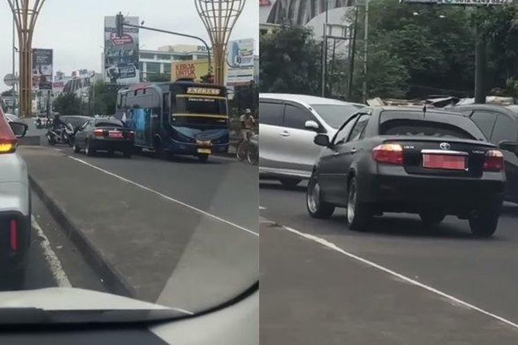 Toyota Vios pelat merah terekam kamera melawan arah. Kejadian ini sempat membahayakan pengguna jalan lainnya